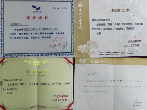 2022年年底,公司終身名譽(yù)董事長(zhǎng)項(xiàng)美根個(gè)人著作《回眸八十春》出版了,《回眸八十春》記述了項(xiàng)美根一輩子堅(jiān)持做好一件事,創(chuàng)新、創(chuàng)造、創(chuàng)業(yè)的一生。他一生坎坷波折,很有時(shí)代特點(diǎn),五十歲下海創(chuàng)業(yè)的經(jīng)歷更是筆難能可貴的財(cái)富,給人啟發(fā)。他在自己所創(chuàng)辦的企業(yè)里把閥門(mén)的”科研”與“制造”直接融為一體,在科研中搞生產(chǎn)制造,在生產(chǎn)制造中搞科研,這種嶄新的科學(xué)社會(huì)實(shí)踐理念,值得全社會(huì)借鑒。他身上有著新時(shí)代弘揚(yáng)和踐行的“工匠精神”,值得大眾學(xué)習(xí)和贊揚(yáng)。項(xiàng)工出書(shū)后的*件事就是將作品回饋家鄉(xiāng)和社會(huì),項(xiàng)工先后以個(gè)人名義向安徽省圖書(shū)館、浙江省圖書(shū)館、黃山市圖書(shū)館、天津圖書(shū)館、金華市圖書(shū)館、屯溪區(qū)圖書(shū)館、浦江縣圖書(shū)館、浙江大學(xué)圖書(shū)館、浙江工業(yè)大學(xué)圖書(shū)館、黃山學(xué)院圖書(shū)館、浙江浦江中學(xué)圖書(shū)館等捐贈(zèng)書(shū)籍。各地圖書(shū)館接收?qǐng)D書(shū)饋贈(zèng)后均表示悉心收藏,供讀者閱覽,并向項(xiàng)美根董事長(zhǎng)頒發(fā)捐書(shū)證書(shū)。