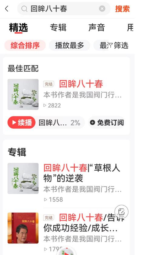 文章詳情近日,公司終身名譽(yù)董事長(zhǎng)項(xiàng)美根個(gè)人著作《回眸八十春》在國(guó)內(nèi)專業(yè)音頻分享平臺(tái)“喜馬拉雅”出版了。喜馬拉雅是一個(gè)提供各類有聲作品在線收聽(tīng)和熱門音頻節(jié)目推薦的平臺(tái),打開喜馬拉雅APP,搜索《回眸八十春》,就有三個(gè)不同版本的《回眸八十春》有聲書,針對(duì)不同讀者編輯出版的這三個(gè)有聲書版本的篇幅不一樣,有48集的,有84集的;三個(gè)演播人(主播)也不一樣分別是豫笙,一彎暖陽(yáng),小國(guó)王亞。