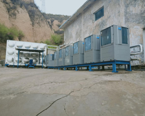 項目概況 ,使用8臺RSJ-Y380/NSN1-H空氣源熱泵提供熱水,日用水量45T熱水。